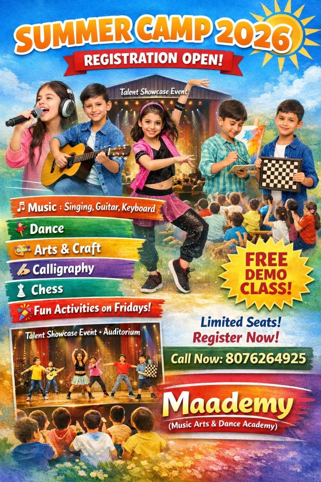 New admissions: Online classes,Kids Summer camp,Dance,Music No:8076264925,7428960540